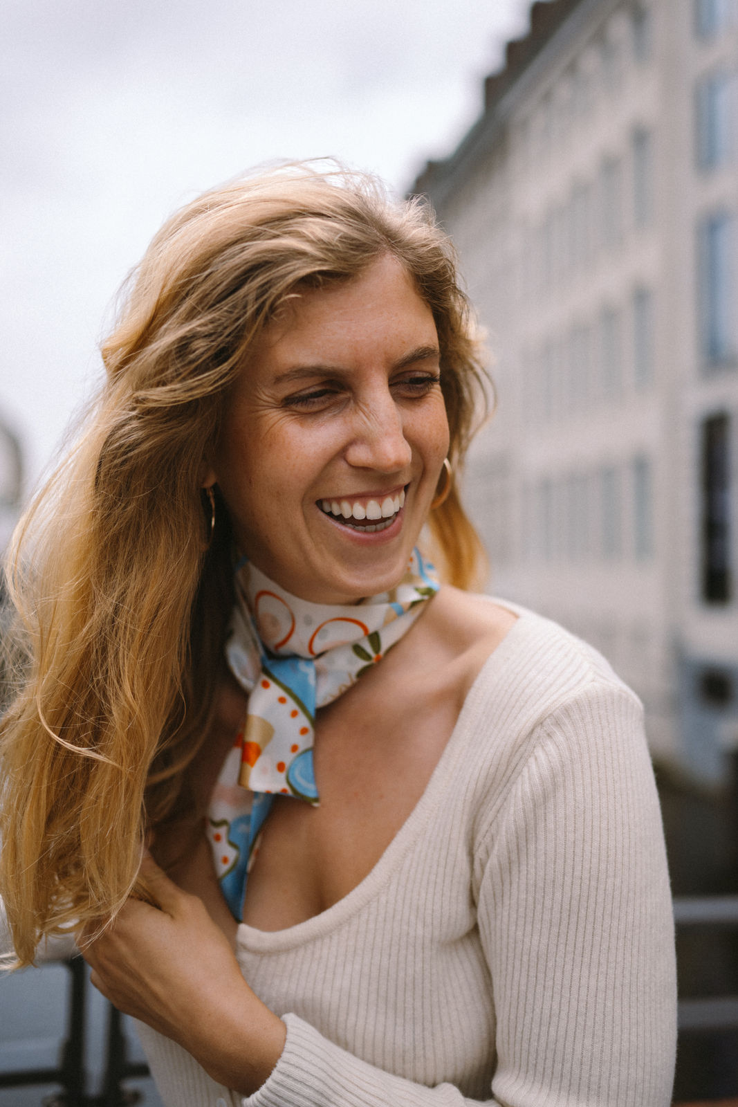 Das Design stammt aus der limitierten Kollektion „Colorful Spirit“ von Alina Klemm. Inspiriert von Reisen, Farben und Lebensfreude, entsteht jedes Motiv als gezeichnetes Original, das anschließend in Deutschland auf hochwertige Seide gedruckt wird. In der Farbvariante Creme verbinden sich sanfte, warme Töne zu einem harmonischen Gesamtbild – elegant, modern und mühelos kombinierbar.