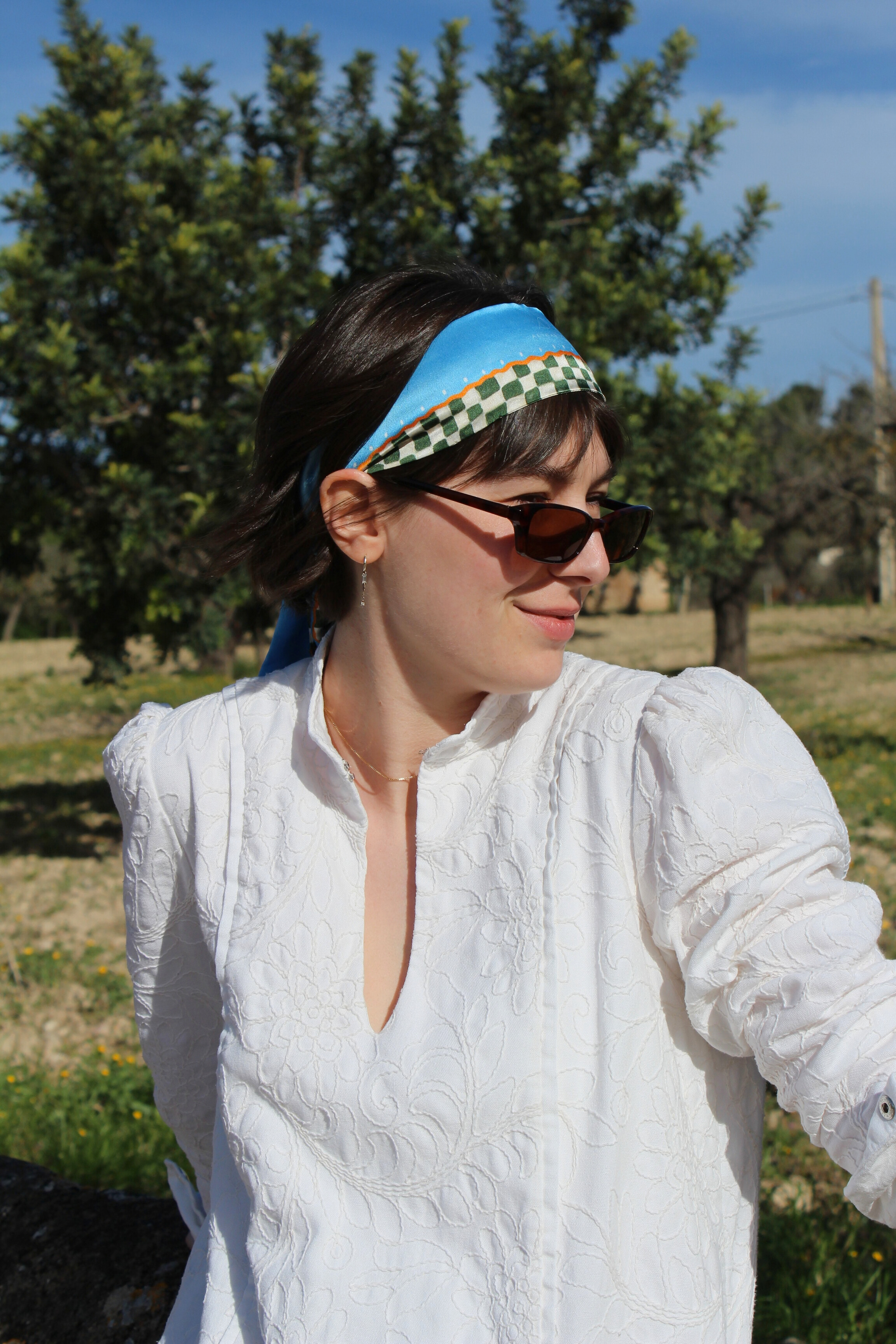 Haarband Seide blau Karomuster
