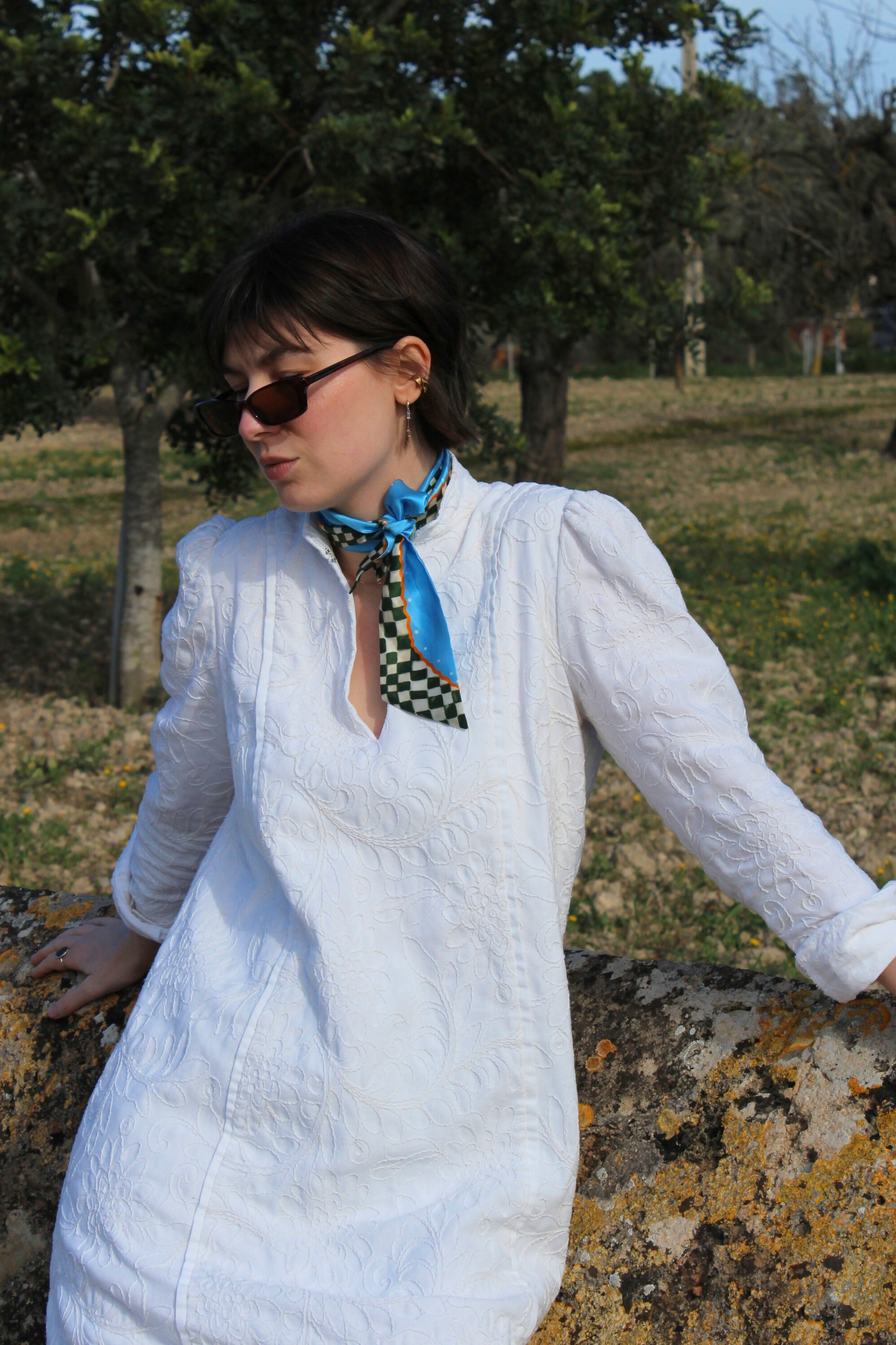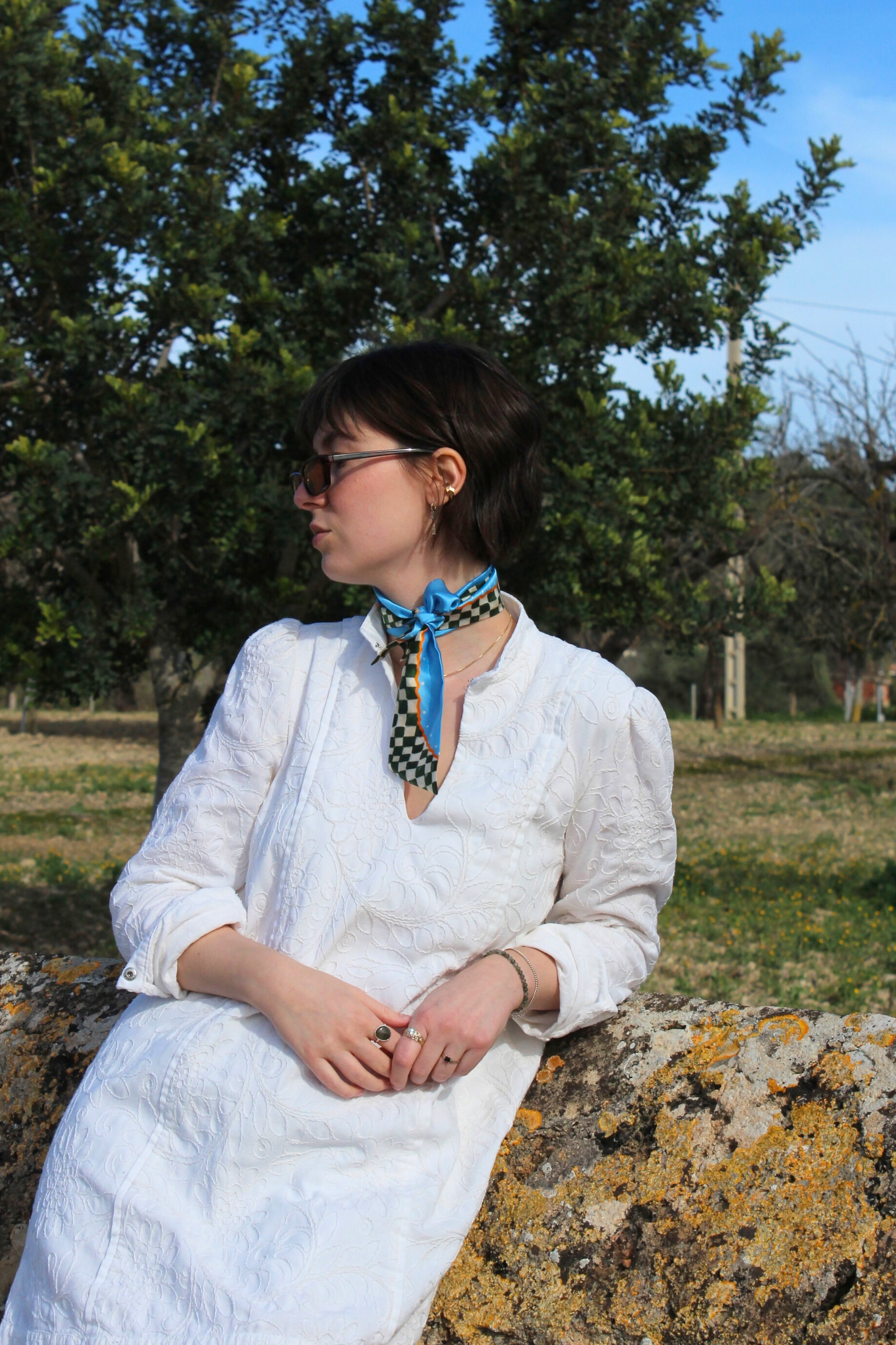 Seidenschal karomuster blau