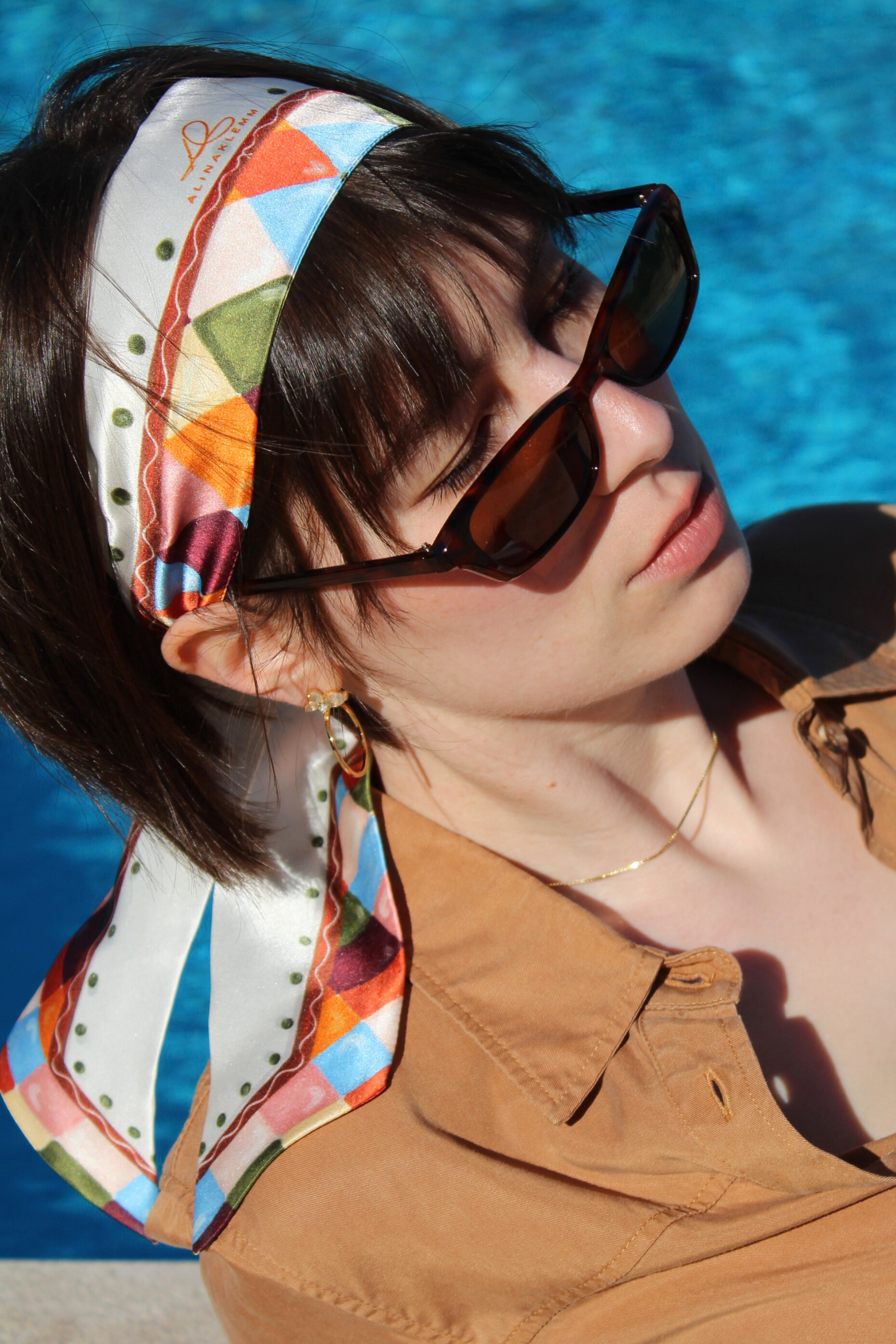 The design comes from Alina Klemm's limited edition “Echoes of Art” collection. Inspired by travel and art, each motif is a small work of art, printed on high-quality silk in Germany. The Bordeaux color variant blends deep red tones with subtle accents of cream, green, and blue – an expression of elegance, warmth, and artistic sophistication.