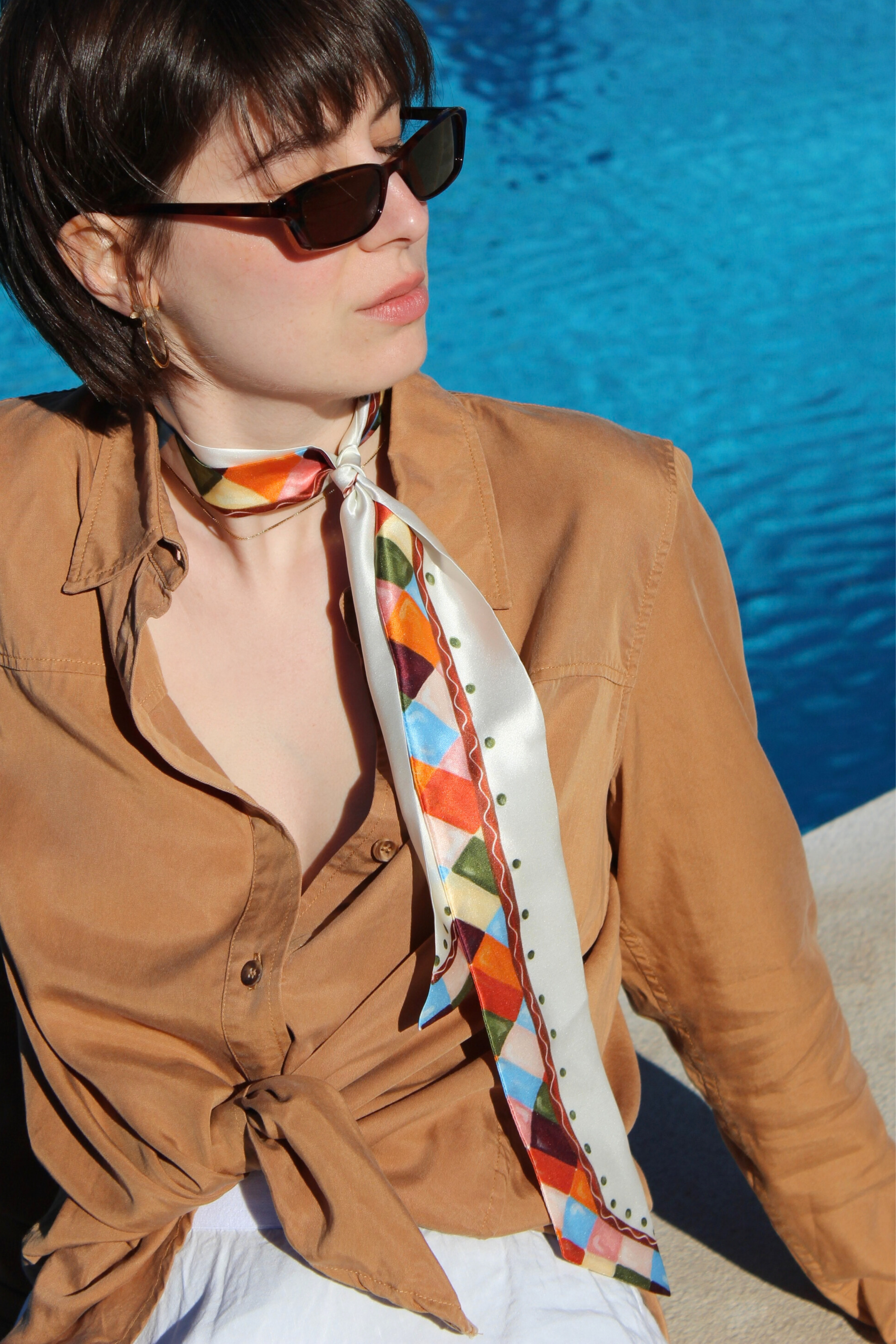 Seidenschal bunt weiss