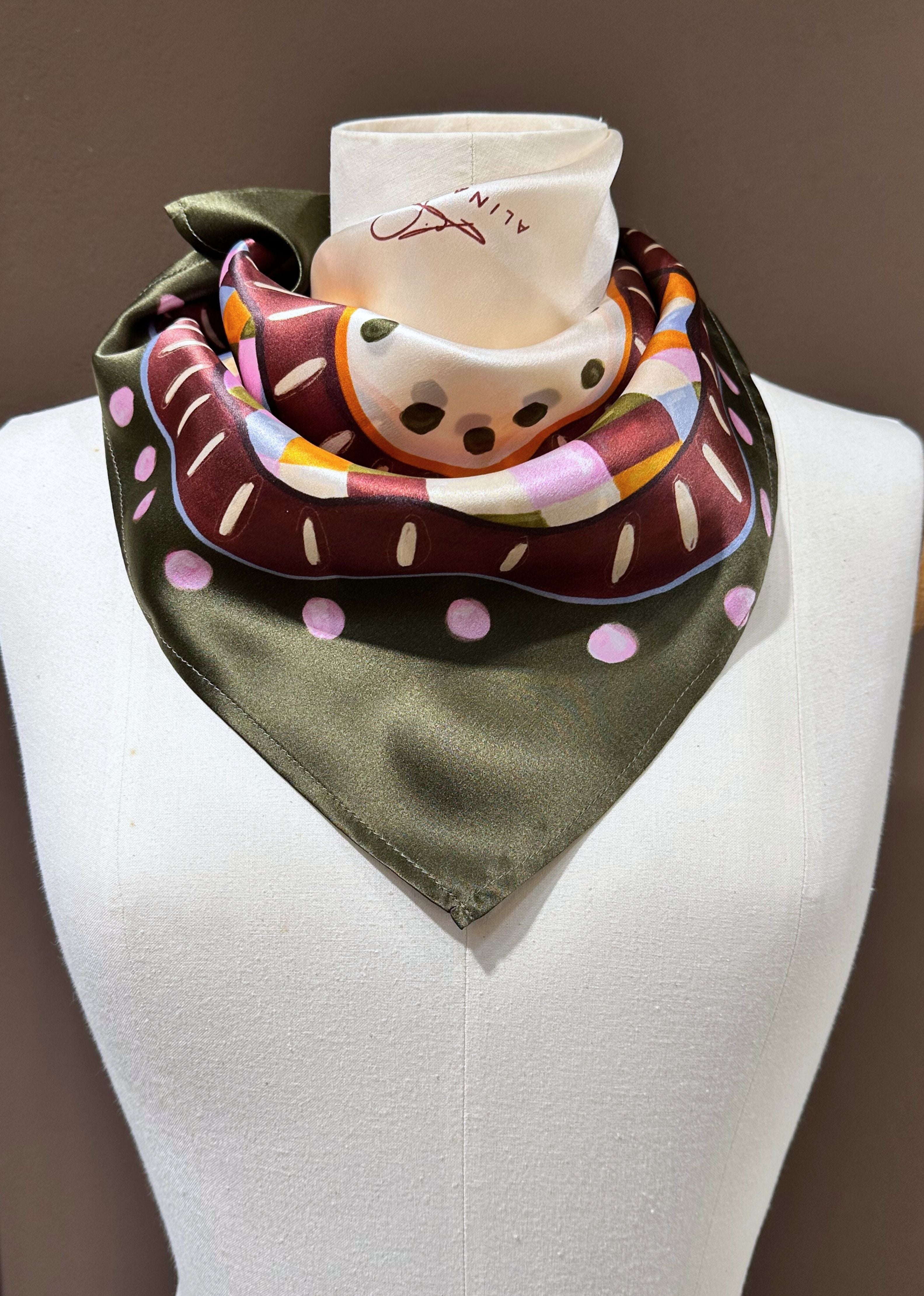 Elegantes, handgezeichnetes Seidentuch aus der neuen Herbst/ Winter Kollektion Echoes of Art. Ein exklusives Accessoire für stilvolle Akzente.
